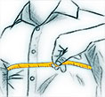 Κρατήστε την μεζούρα ψηλά, κάτω απ’τις μασχάλες. Τοποθετήστε δυο δάχτυλα ανάμεσα στο στήθος και τη μεζούρα. Σταθείτε σε φυσική στάση.