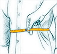 2.ΜΕΣΗ: Τυλίξτε την μεζούρα γύρω από το φαρδύτερο σημείο της μέσης. Αυτό είναι συνήθως στο ύψος του αφαλού. Τοποθετήστε και πάλι δυο δάχτυλα ανάμεσα στην μέση και τη μεζούρα. Σταθείτε σε φυσική στάση.